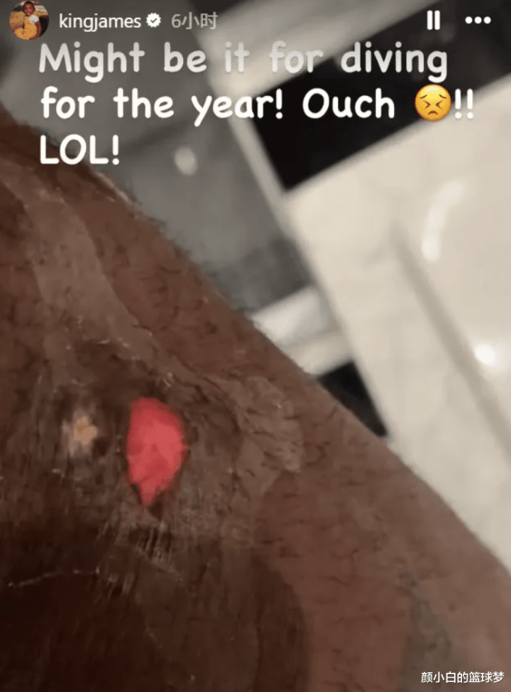 对阵掘金一战,41岁的勒布朗复刻了罗德曼的飞身扑球,阿谁行为令东谈主泪目,老翁子为了胜利付出一切,一大早他在个东谈主IG上晒出了膝盖上的伤口,飞扑五米多磨出了一个很大的伤痕,但老子头莫得缺席对阵火箭的卡位战。